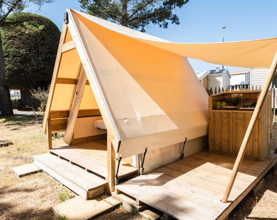 Ecolodges, backpackers or family tents: experience the true spirit of camping, in the standing of your 3 or 4 star establishment. They are equipped with one or more beds and a covered outdoor kitchen. Share a moment of relaxation on the sheltered wooden terrace which gives you an extra space in any weather.